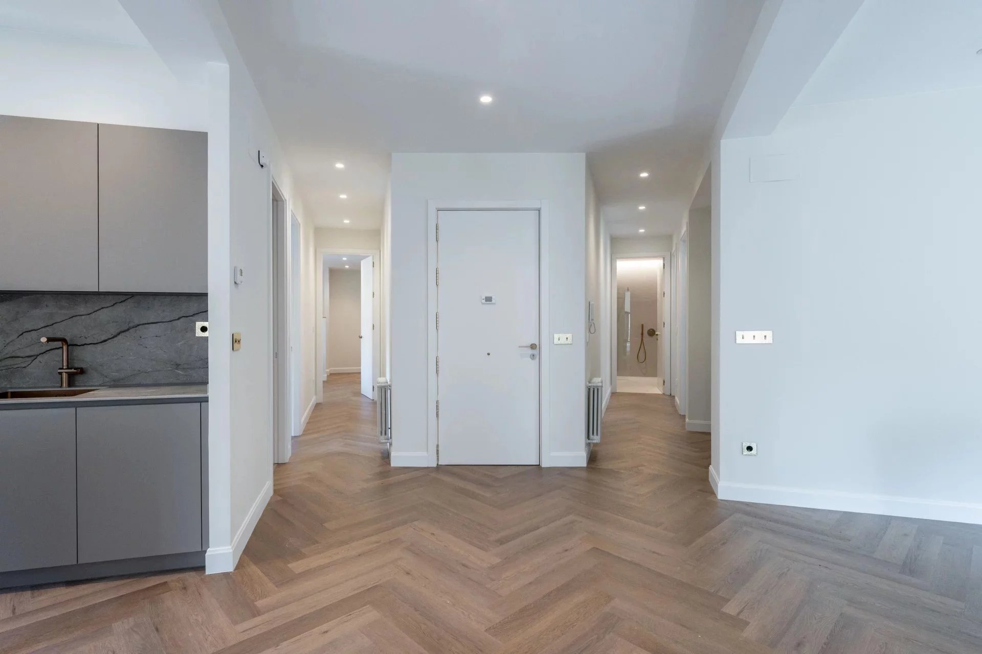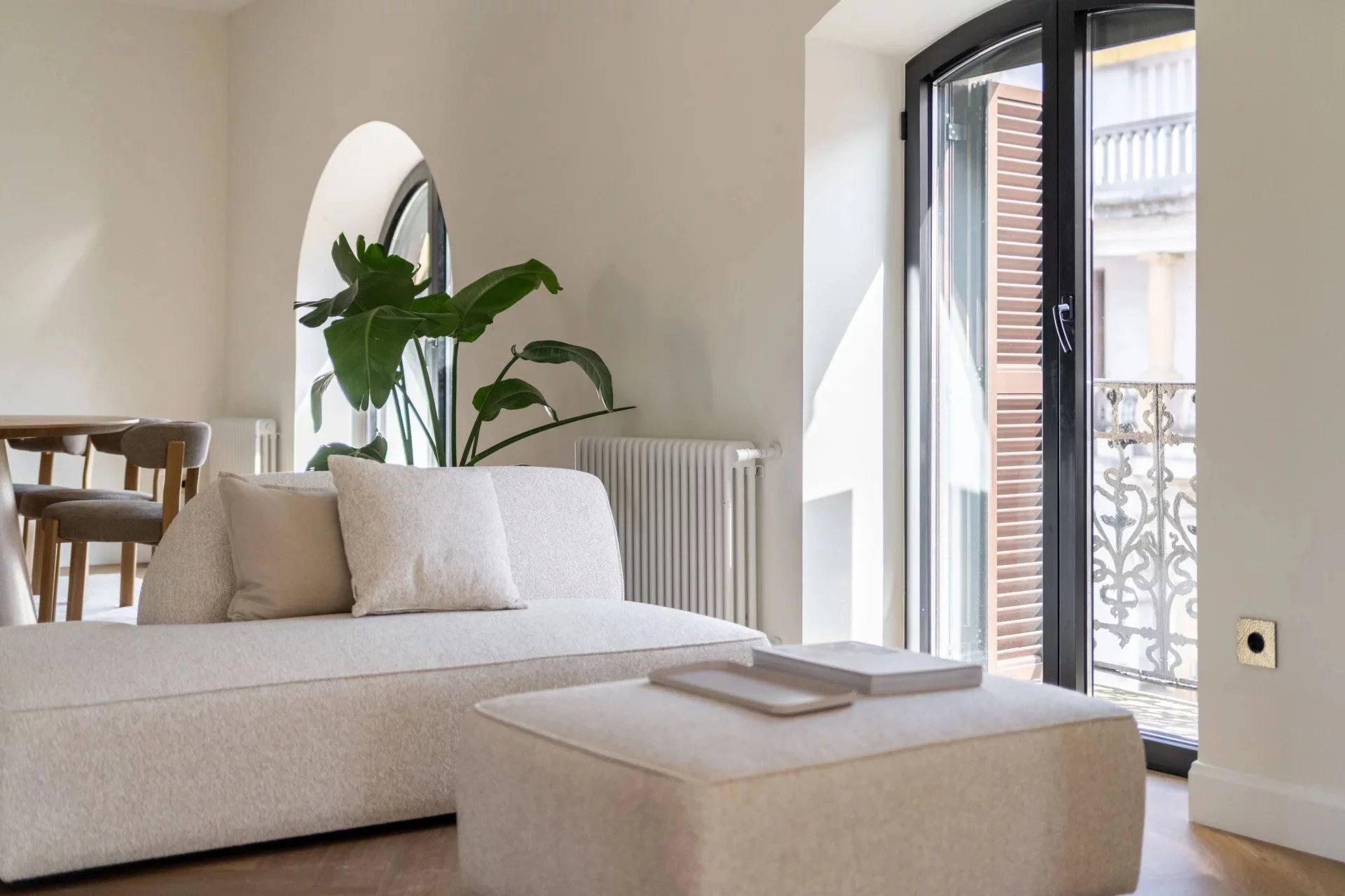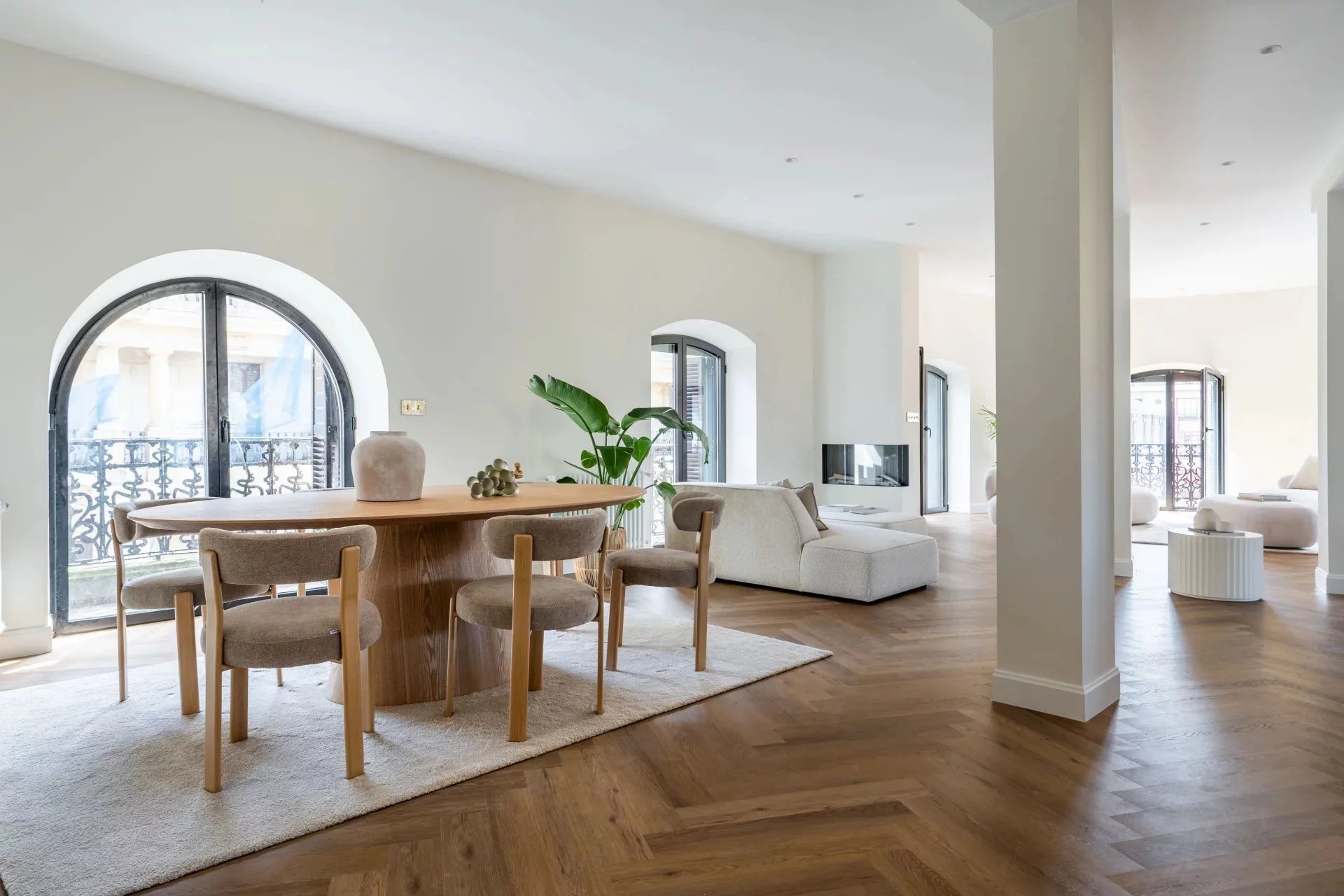 The main living area enjoys exceptional natural light throughout the day thanks to its multiple exposures. Large windows opening onto several balconies allow abundant natural light to flood the interiors and enhance the elegant character of this distinguished residence in one of the most representative areas of San Sebastián.