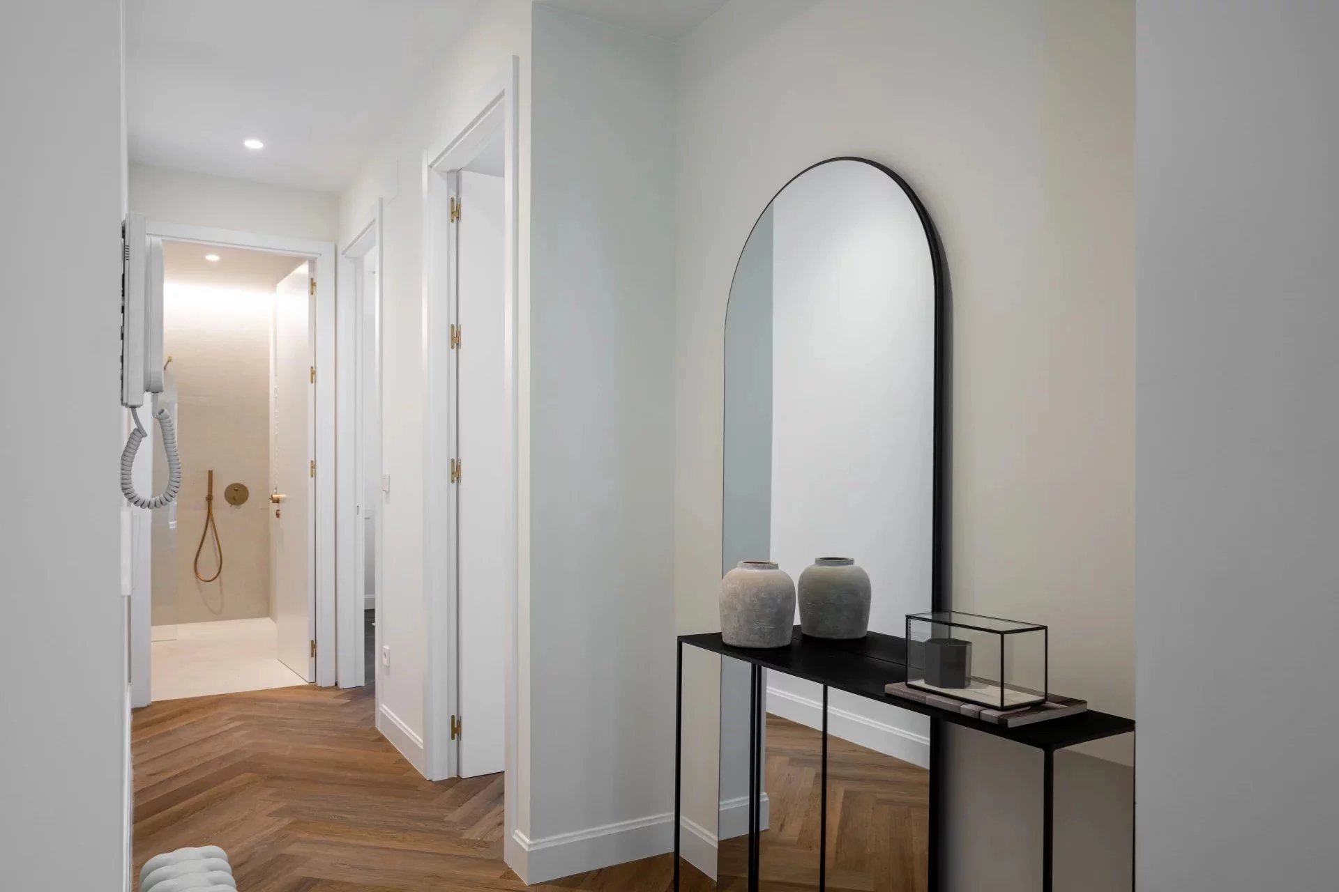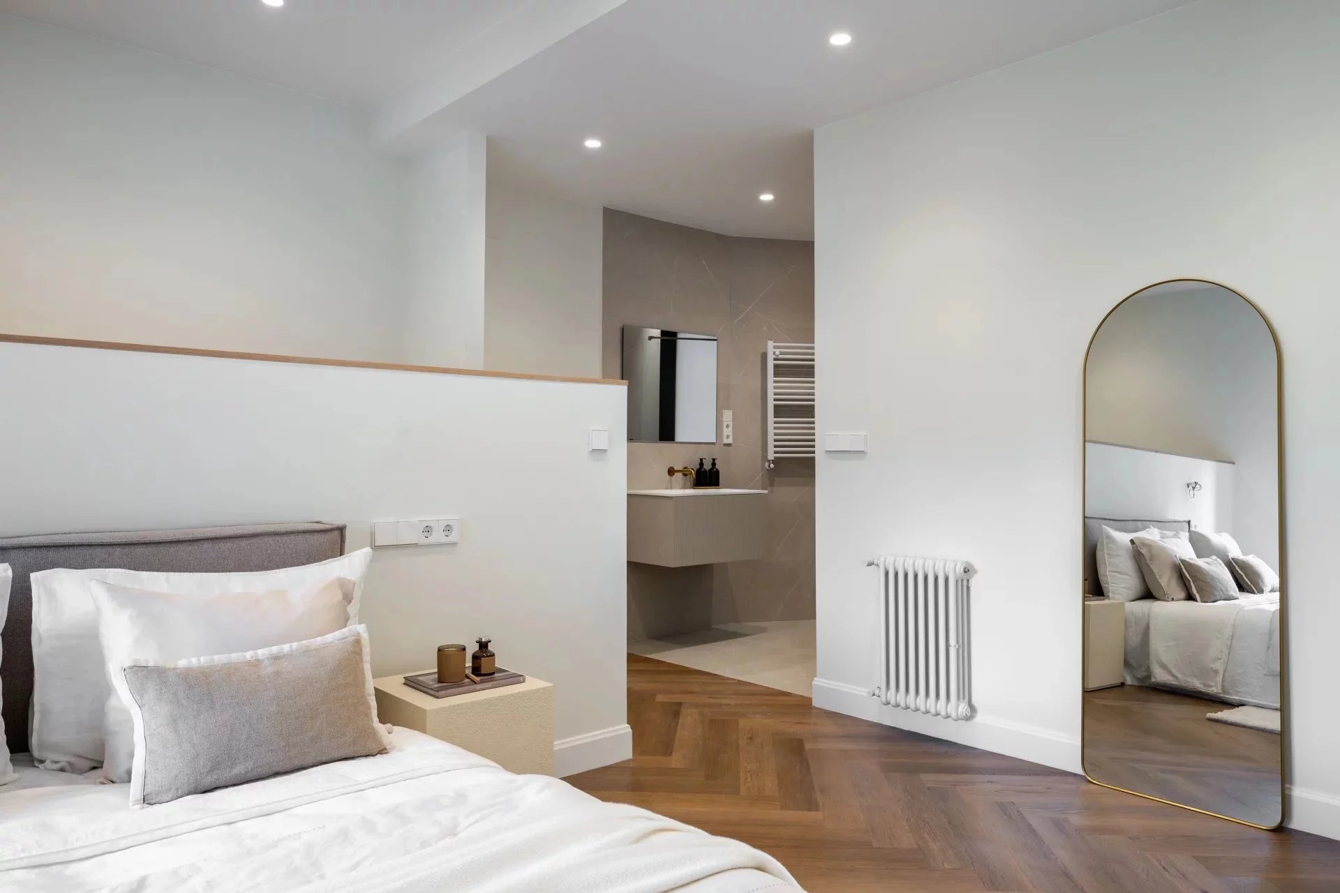 The private quarters are thoughtfully distributed on both sides of the apartment, providing comfort and independence.