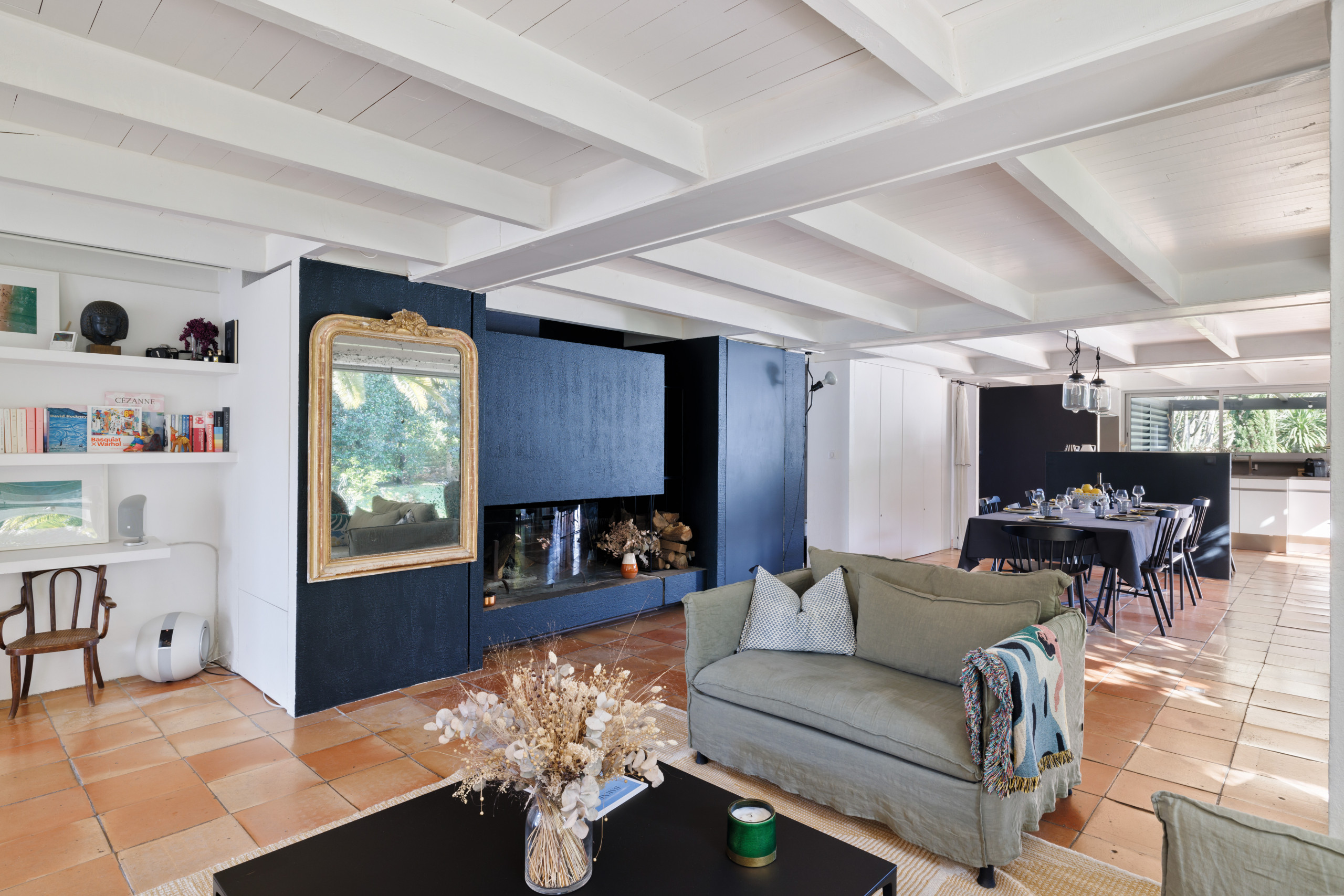 The Villa boasts a large living room with a fully-equipped open-plan kitchen, a lovely dining area and a charming lounge with fireplace, all of which is largely open to the outside world thanks to large bay windows.