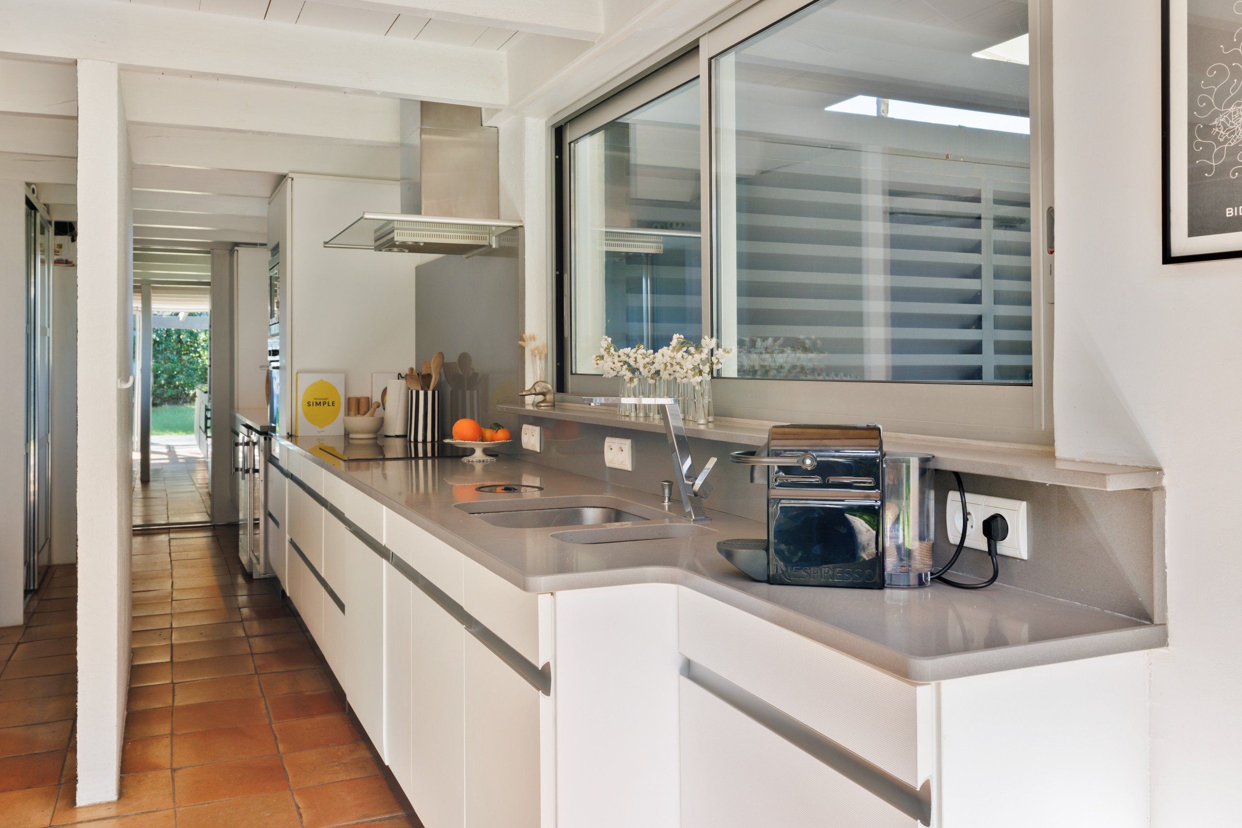 Outside, the villa boasts a large garden with terrace, a dining area and, above all, a lovely sunny pool area. There's also a tree house for children.