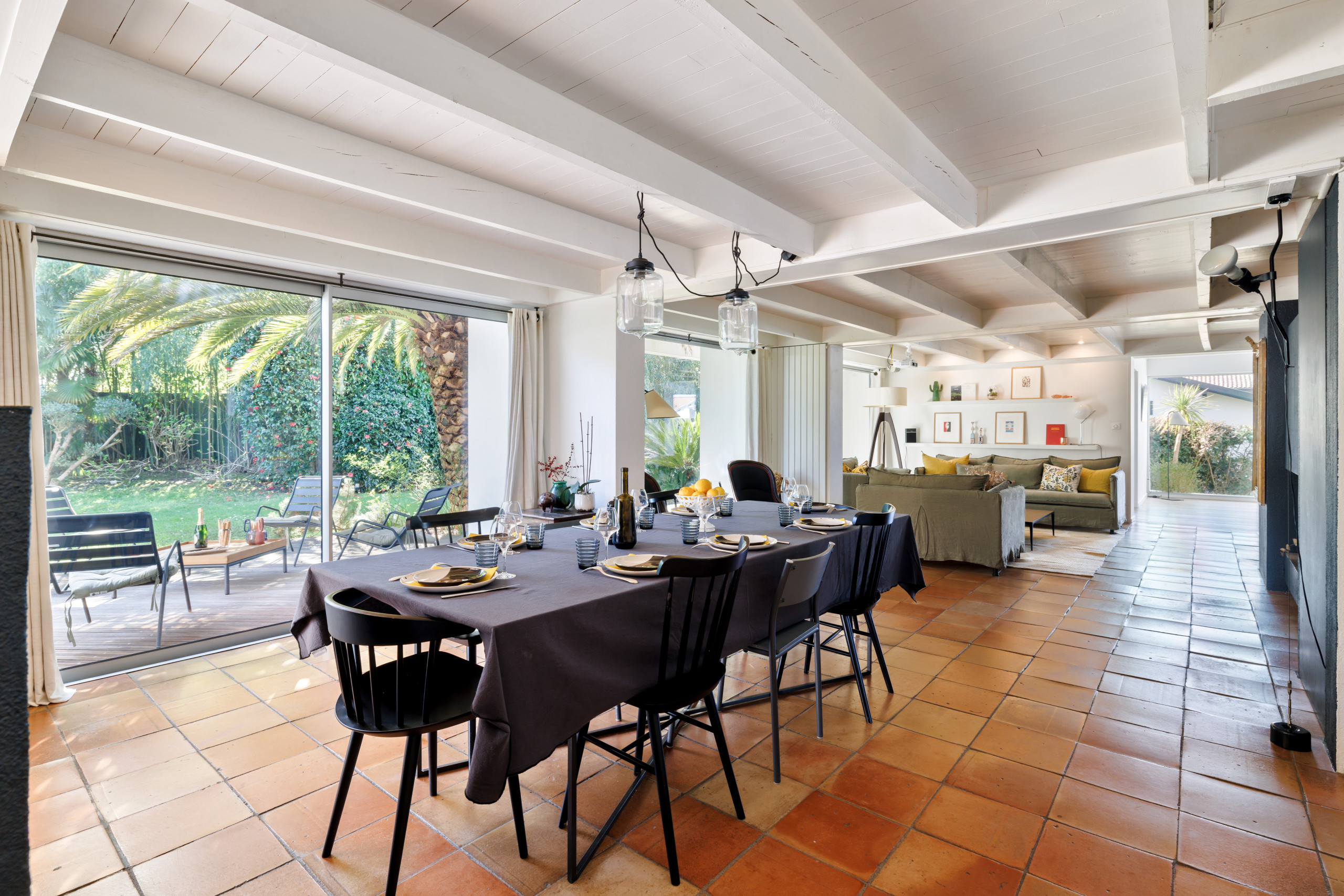 In a calm, leafy setting, discover the villa HARAUSTA. Not far from Biarritz city center, this cosy family villa has been tastefully decorated to a high standard. A large garden with heated swimming pool*, a beautiful lounge that opens onto the outside and 4 bedrooms, including a large suite, are just some of the features that make the Villa HARAUSTA so charming.