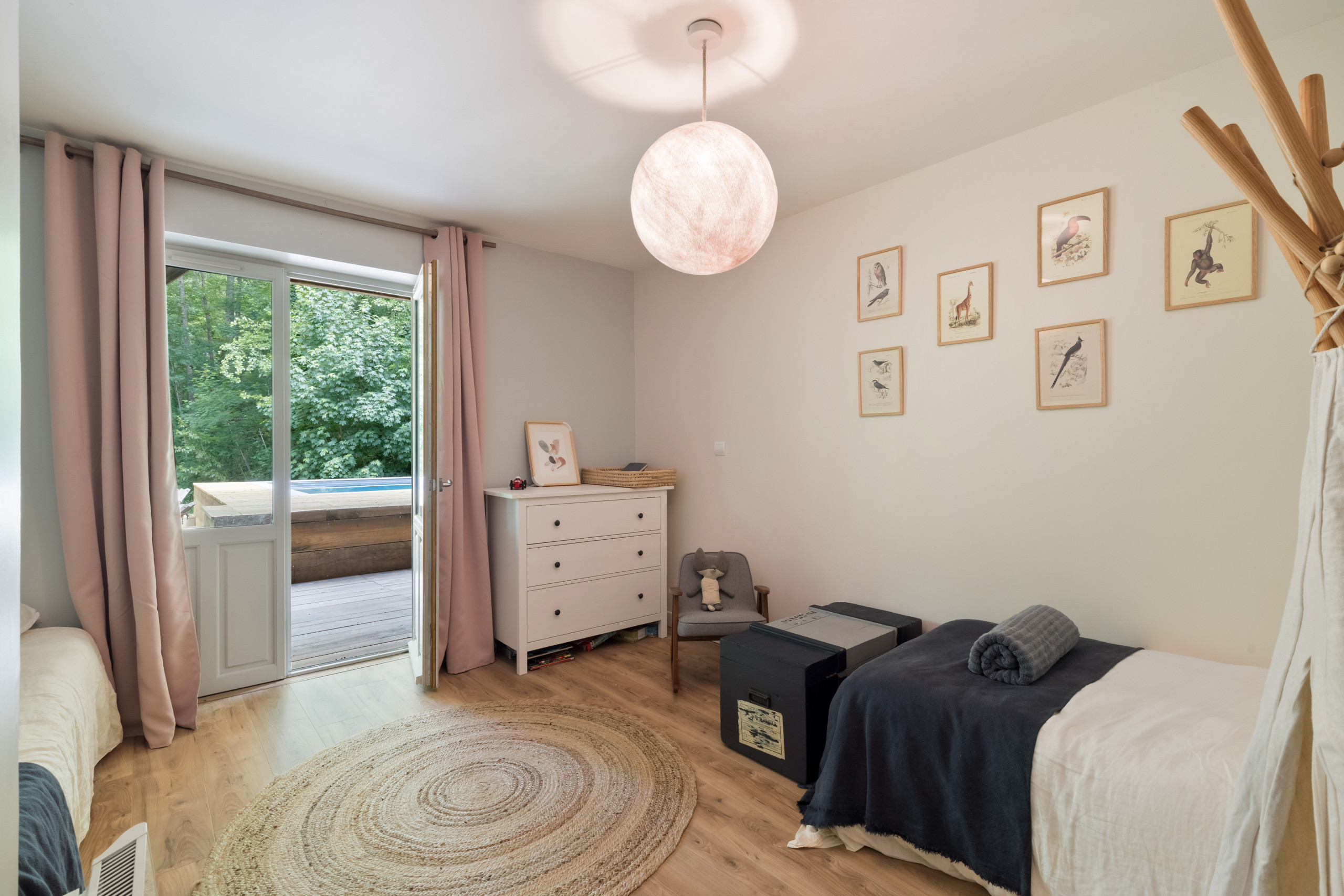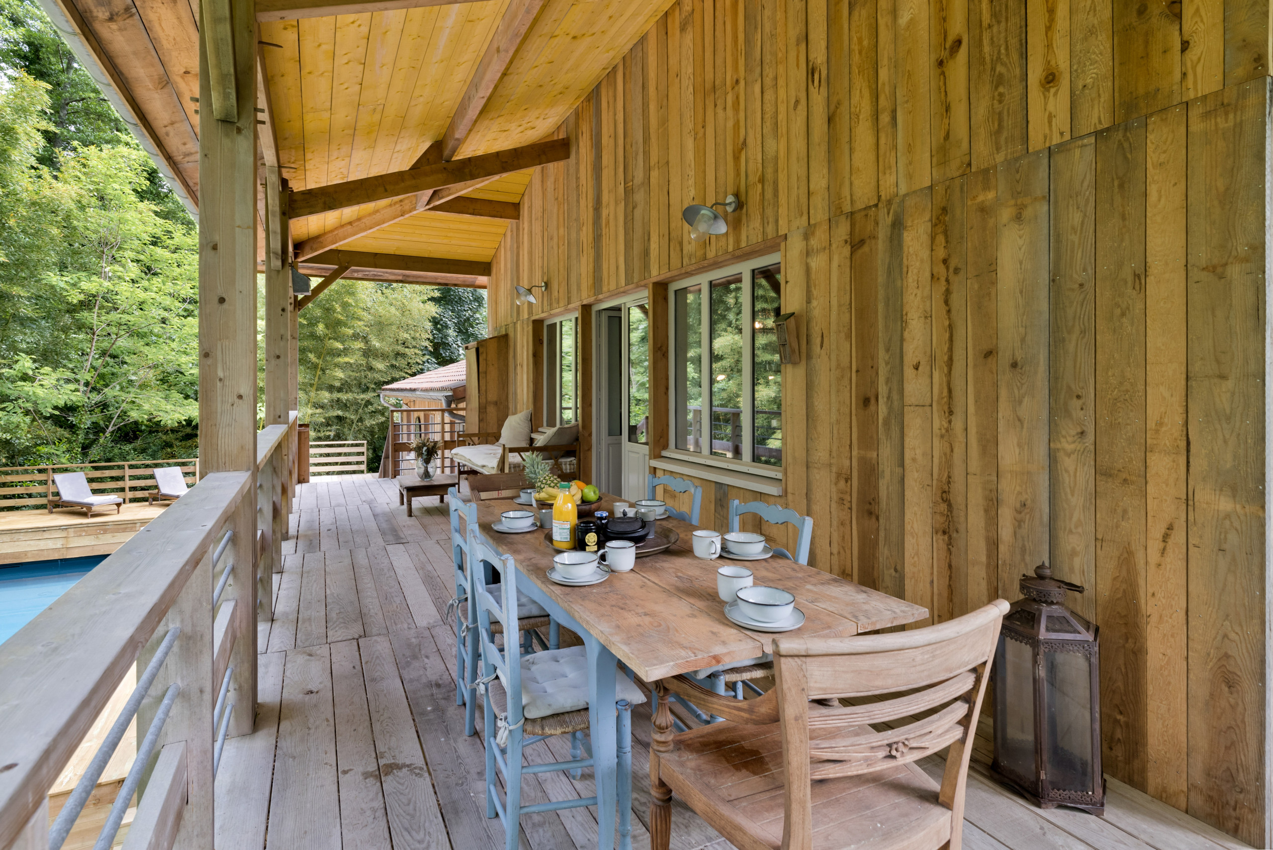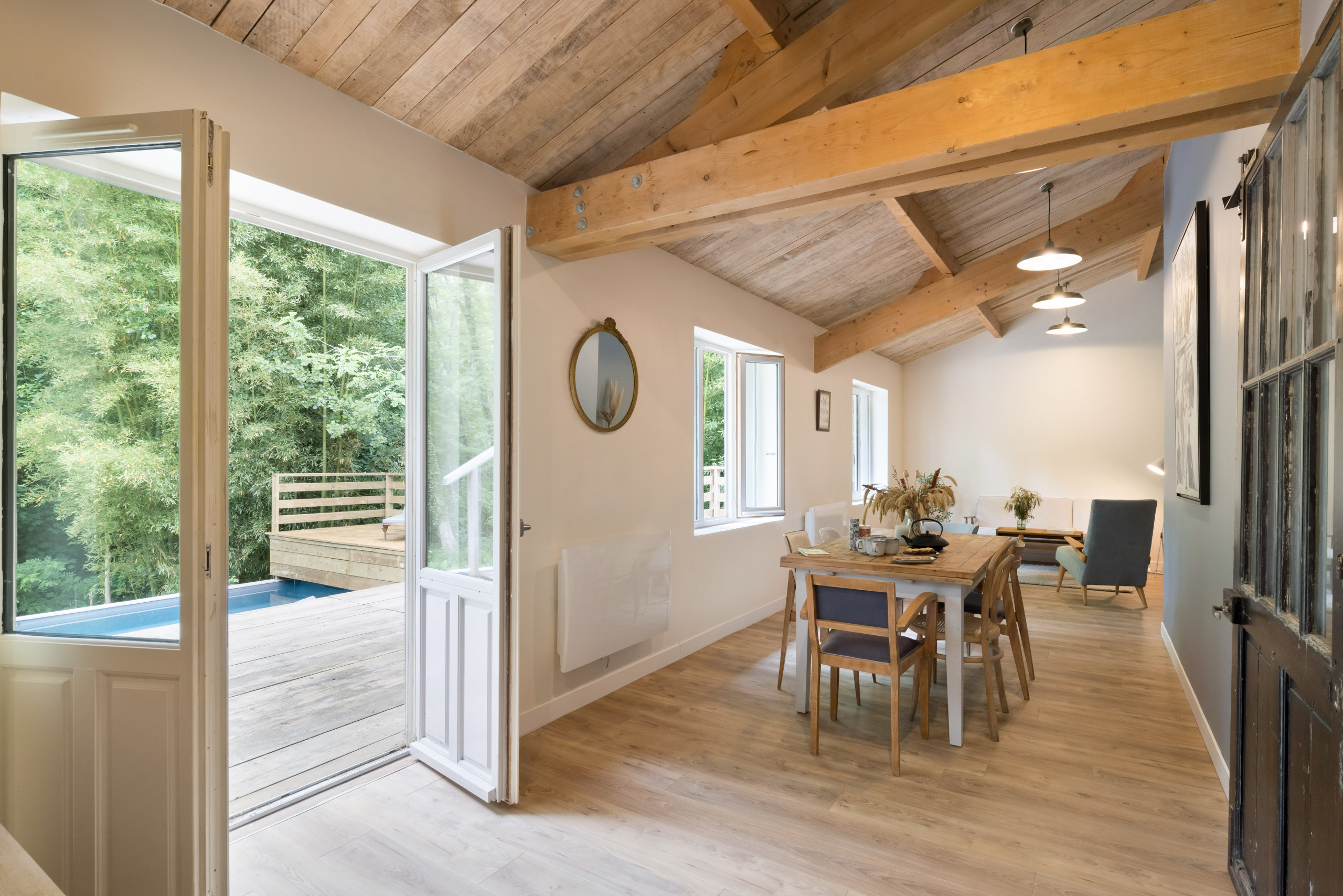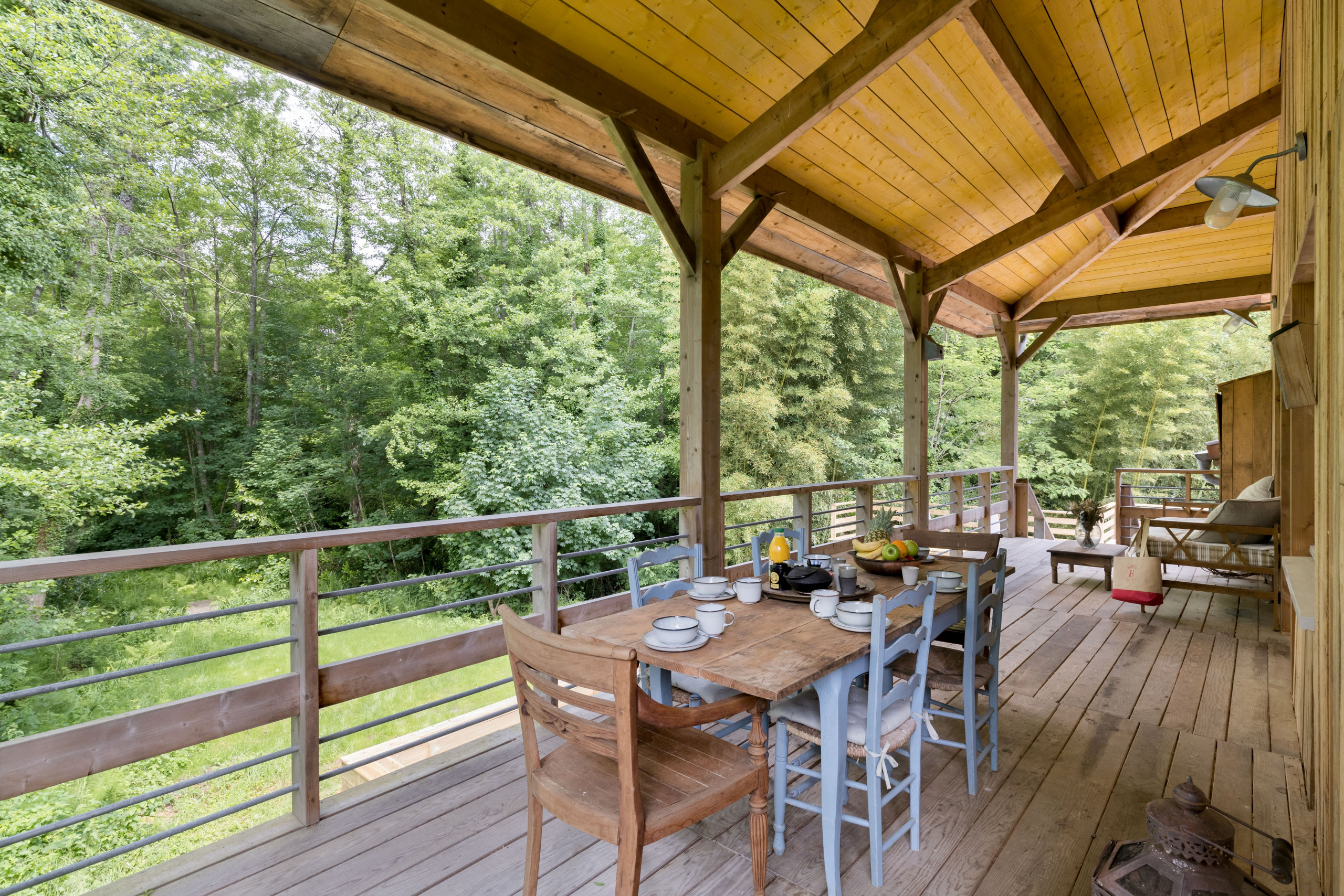 Outside, take advantage of a beautiful terrace to share your meals "suspended" in the forest. A heated swimming pool is at your disposal with garden furniture (some parts are not safe for young children). Only the sound of birds and the nearby stream will disturb your relaxing afternoons by the pool.