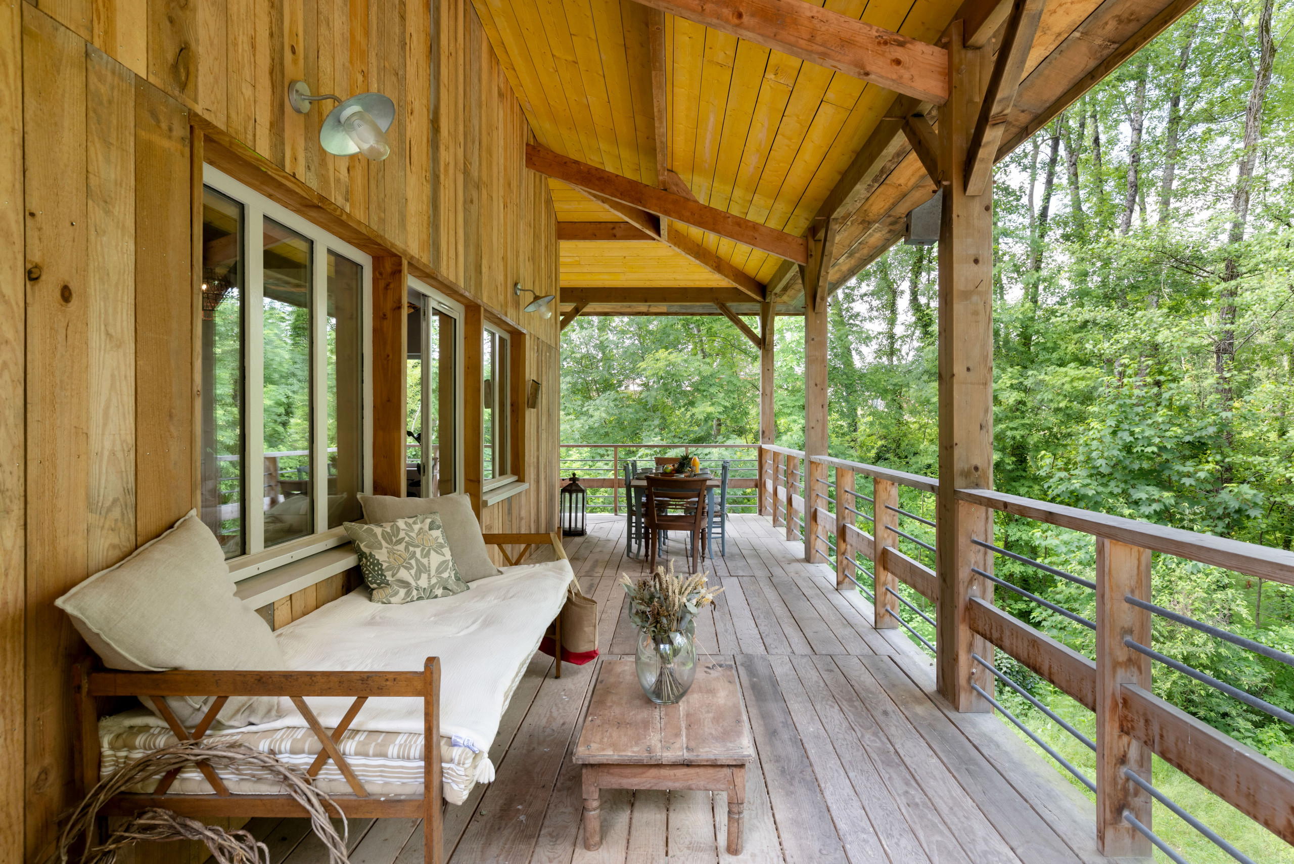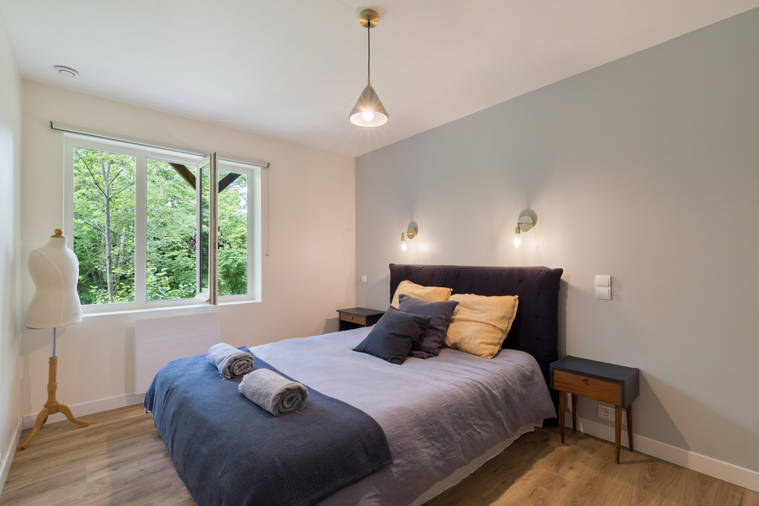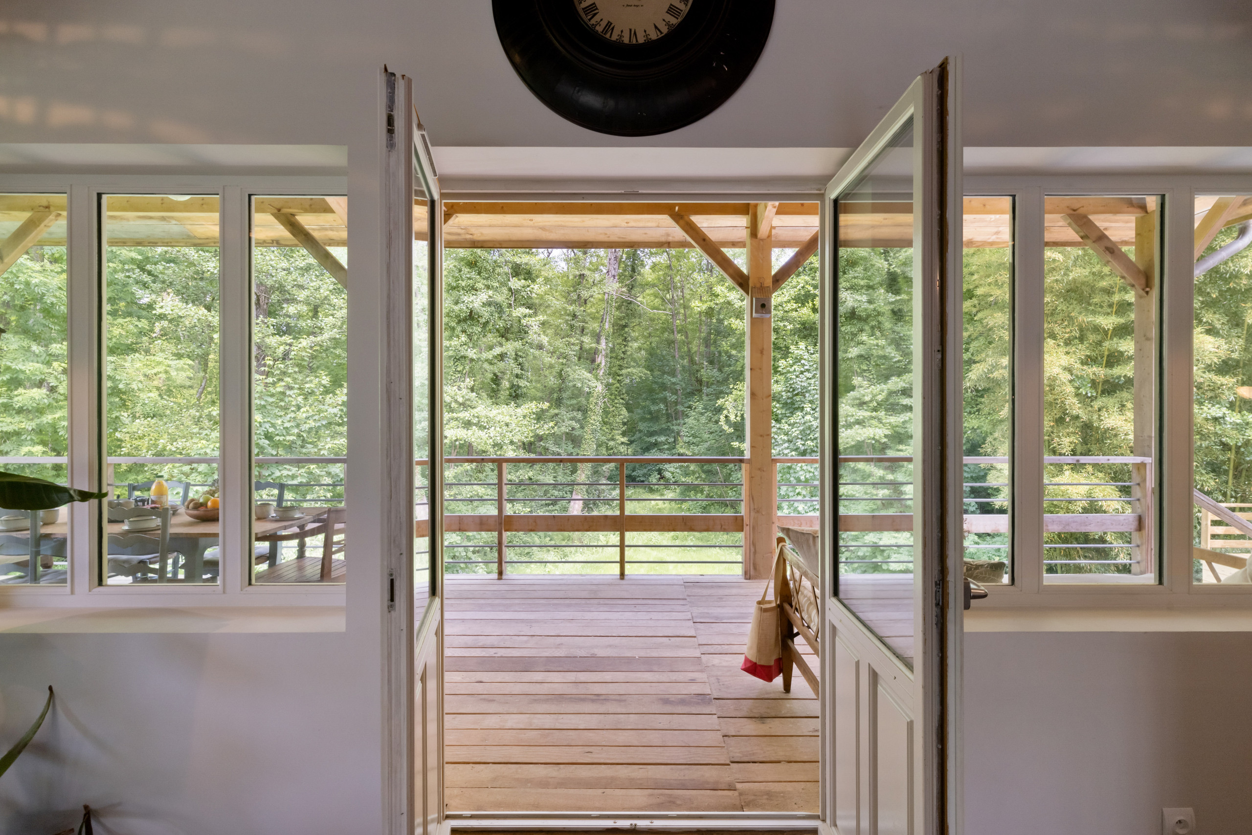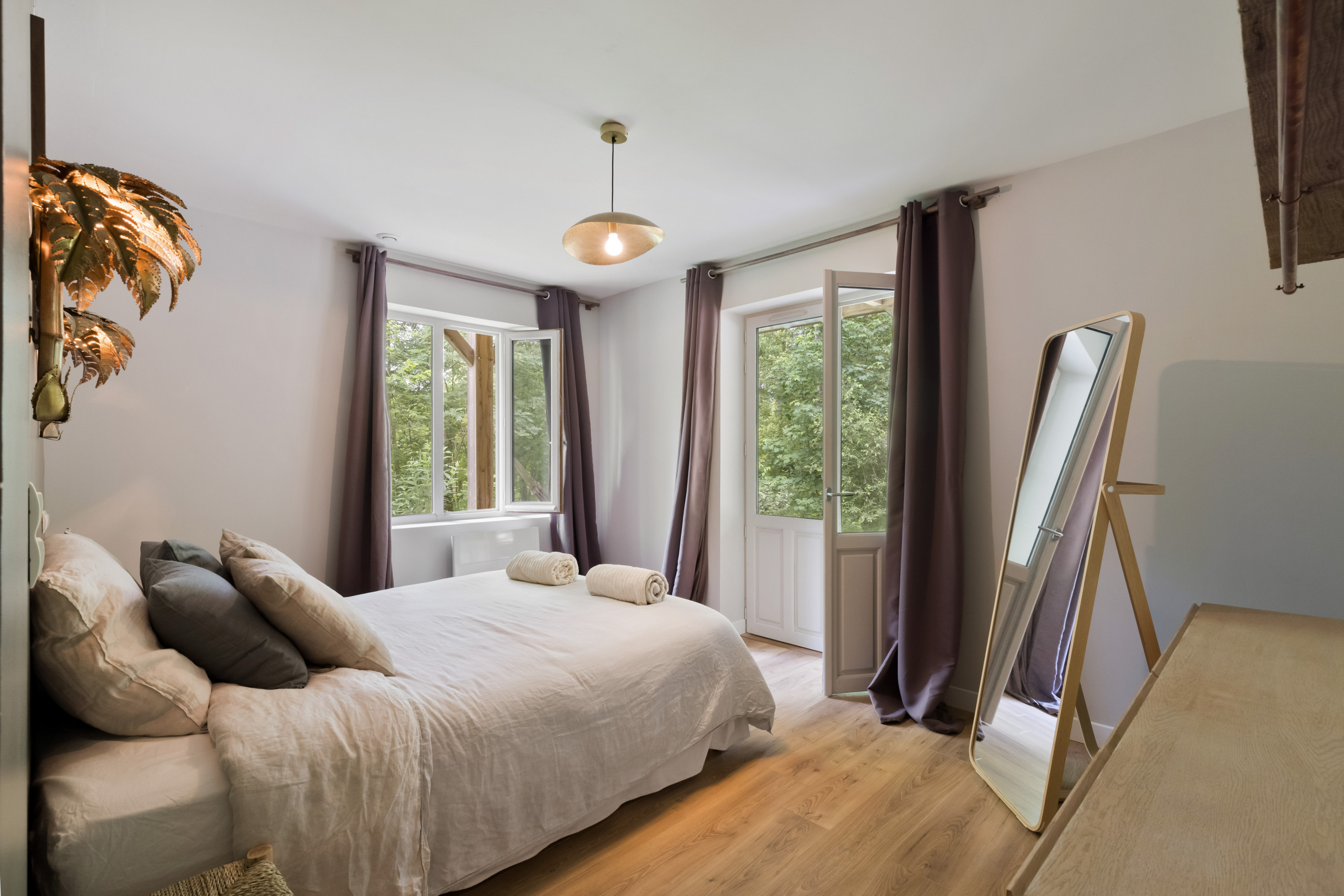 Outside, take advantage of a beautiful terrace to share your meals "suspended" in the forest. A heated swimming pool is at your disposal with garden furniture (some parts are not safe for young children). Only the sound of birds and the nearby stream will disturb your relaxing afternoons by the pool.