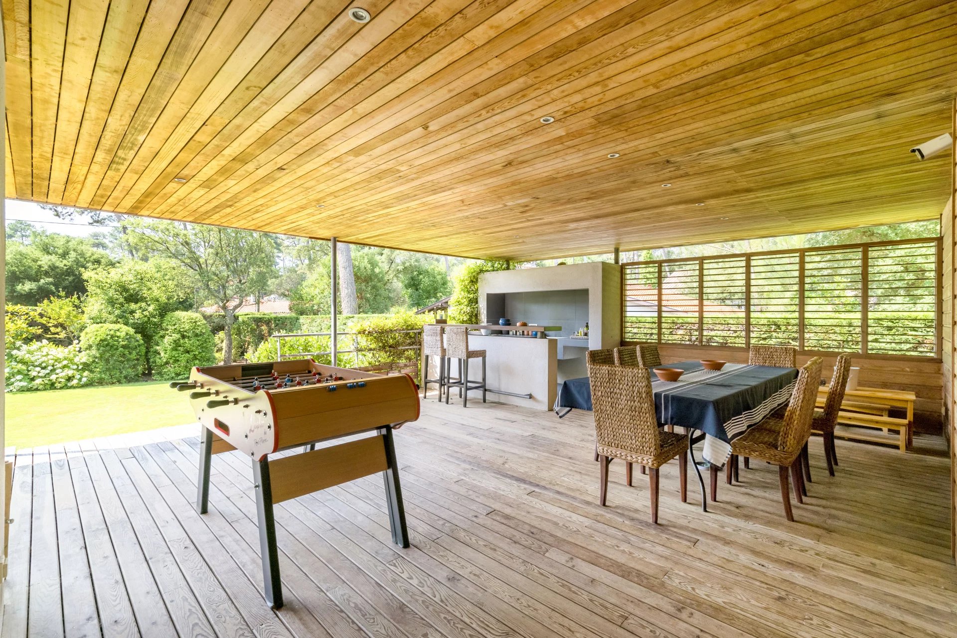 Una amplia terraza de madera exótica, perfecta para momentos de convivencia