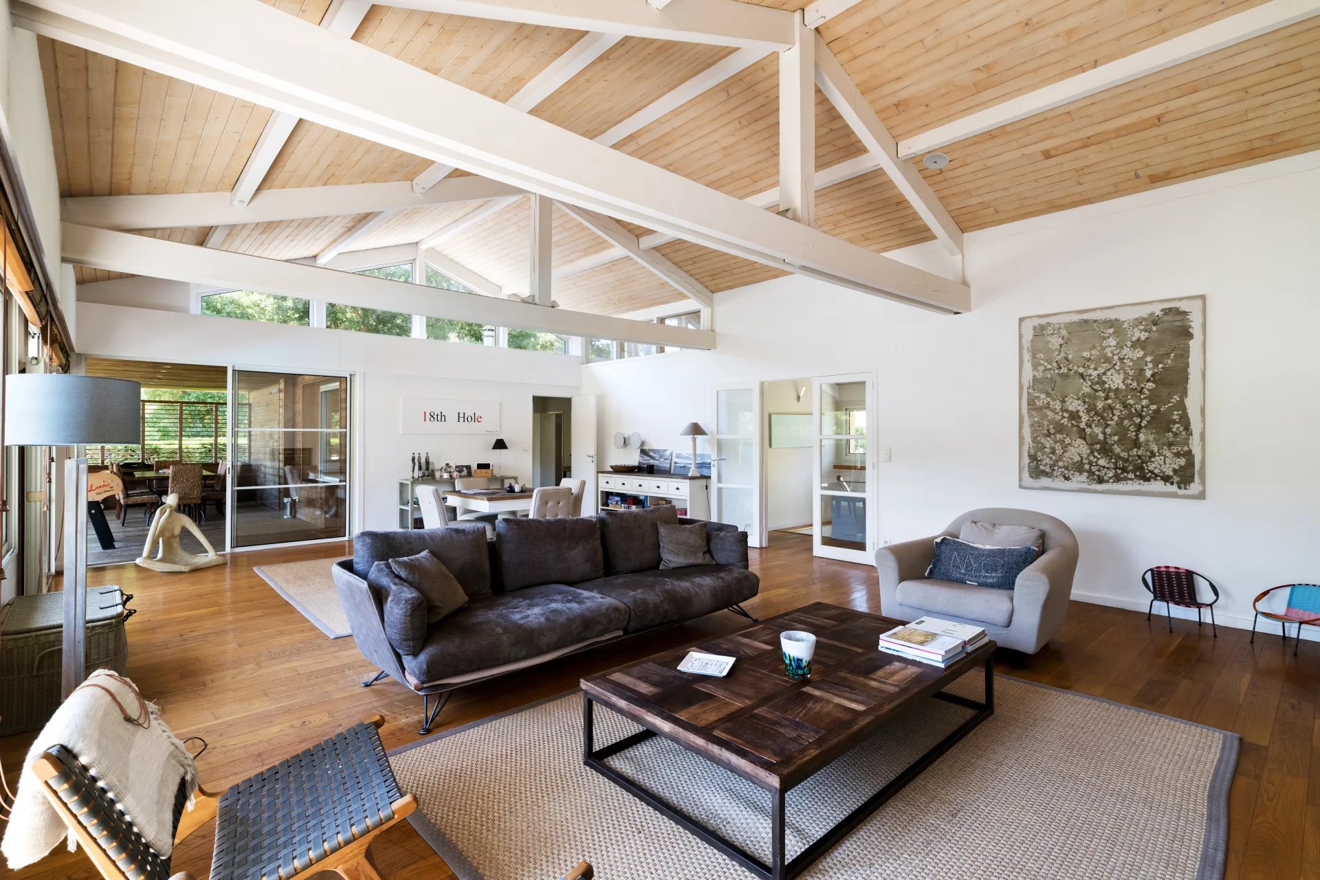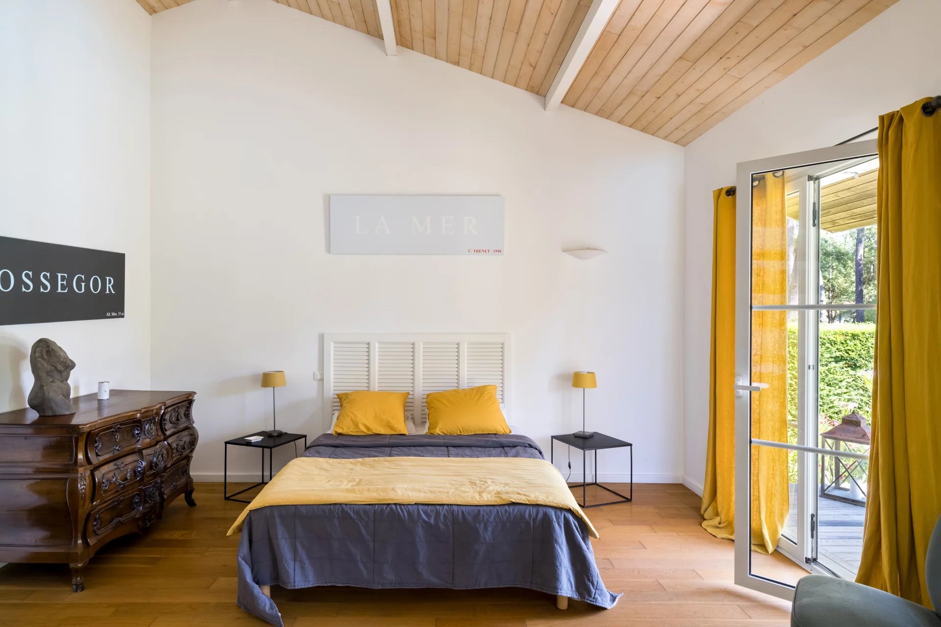 Idealmente ubicada a solo unos minutos del campo de golf, el lago marino y las playas del océano, esta villa de estilo californiano ofrece aproximadamente 270 m² de superficie habitable, así como 204 m² adicionales por desarrollar según las necesidades y deseos del futuro propietario. Combinando con elegancia el confort moderno con un encanto atemporal, esta propiedad fue construida en 1970 y renovada con esmero, respetando su arquitectura original. Destaca por sus generosos volúmenes llenos de luz natural y su fluida conexión entre los espacios interiores y exteriores. La casa también cuenta con una segunda entrada de servicio, ideal para el personal o la logística diaria.